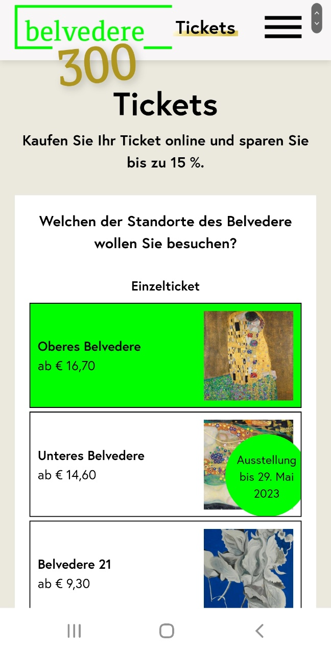 우선 벨베데레 궁전 홈페이지(www.belvedere.at) 접속..하였으나 무료입장에 대한 친절한 안내는 없는 듯. 당황하지 않고 Tickets 클릭