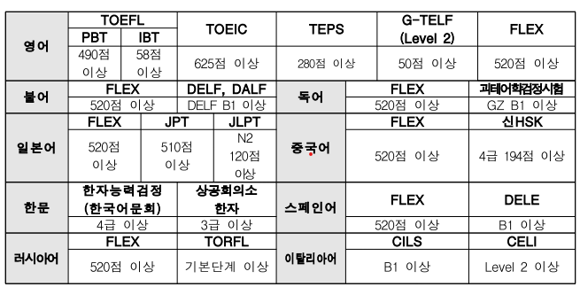 영어 성적 커트라인은 높지 않은 편.