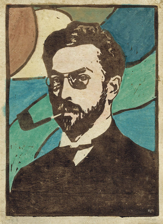 뮌터가 제작한 칸딘스키의 초상, Portrait de Kandinsky, 1906, colour woodcut 25.9 x 19 cm