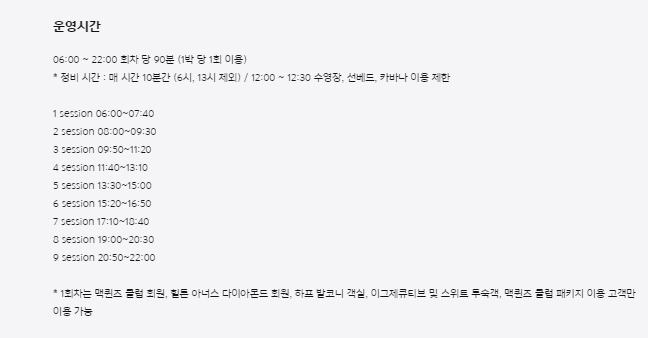 숙박 당 1세션 밖에 이용할 수 없어서 아침 8시 타임에 입장했습니다.
