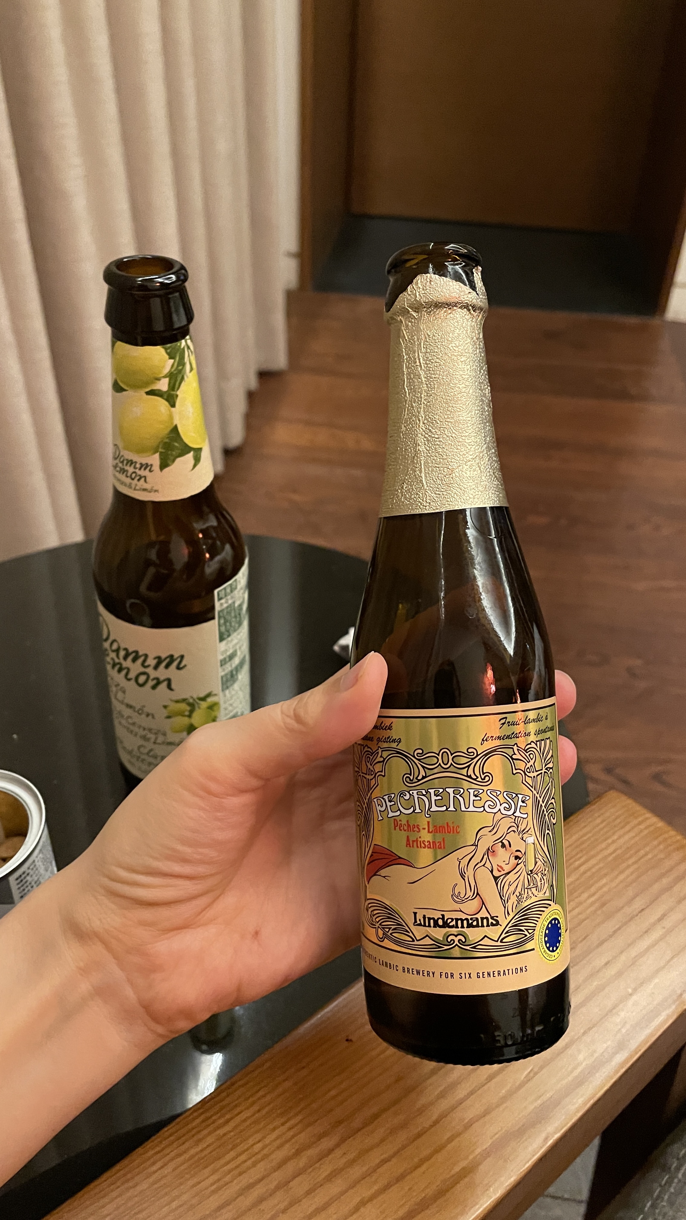 원래 람빅은 시큼털털한 맛이 특징인데 이 린데만스 뻬슈레제는 과즙을 많이 넣어 음료수에 가까운 맛입니다.