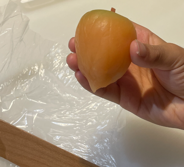 마지막으로 만든 것은 <킨톤>이라는 과자인데, 굵은 체로 앙금을 눌러 포실포실하게 소보로를 만든 다음