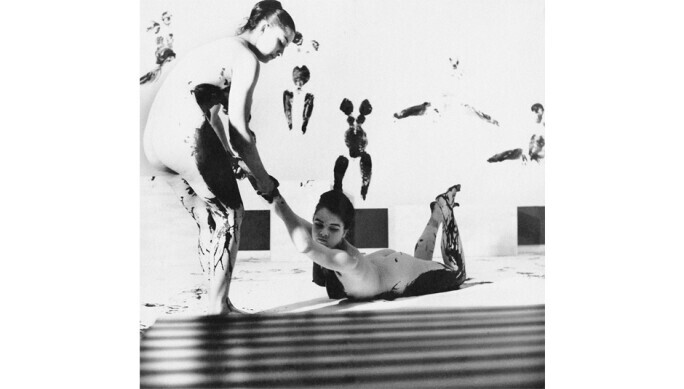 '우주 발생론'(1960) 연작에서 그는 바람과 비의 예측할 수 없는 효과들을 캔버스에 기록했고, '인체 측정'(1960~1961) 연작에서는 클랭이 직접 작곡한 곡인 '단음 교향곡'(1949)이 연주되는 가운데, 푸른색 페인트를 칠한 여성들의 벌거벗은 몸을 바닥에 놓인 커다란 캔버스에 굴려 그림을 그렸습니다. 당시 그의 '살아있는 붓'을 가르켜 너무 도발적이라는 비판을 받기도 했습니다.