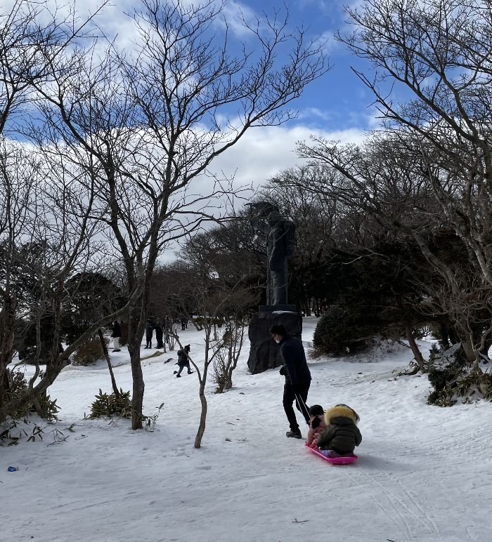 1100고지가 인기 있는 이유는 1100고지 휴게소쪽에 완만한 언덕이 있어서 썰매타기에 좋고,