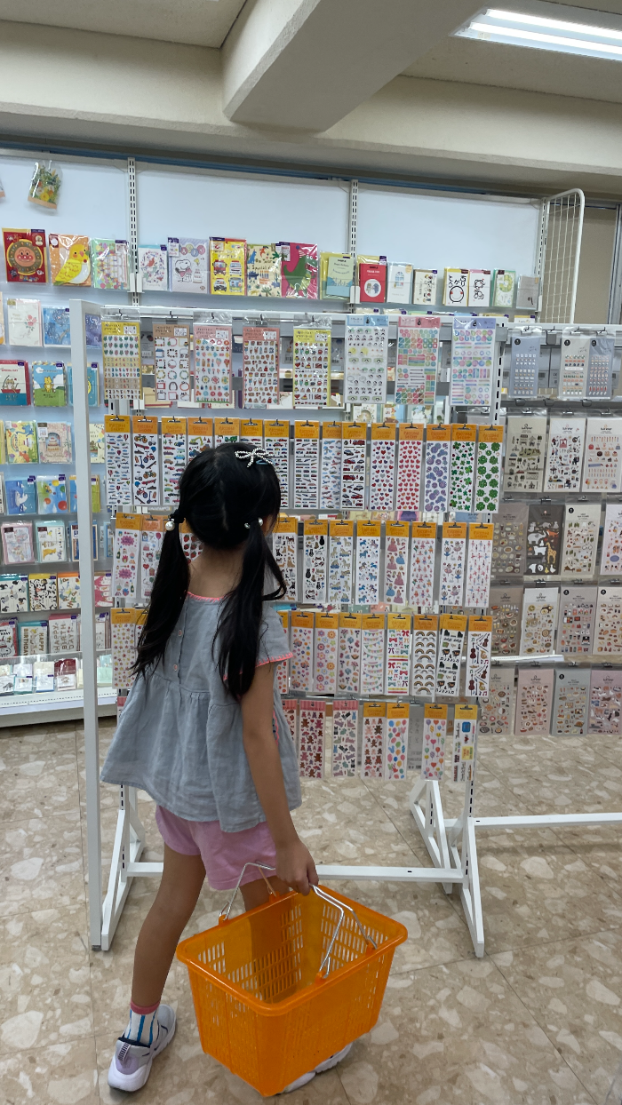 우리 초1 딸래미는 아직 애기같은 게 필기도구보다 스티커에 푹 빠져서 우리나라 문방구에도 있을법한 스티커를 아주 신중하게 골랐다.