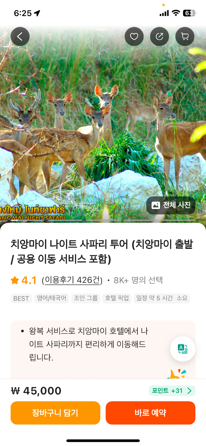 나이트 사파리가 도심을 벗어난 곳에 있다보니 돌아오는 택시를 잡기 어렵다는 정보를 보고 픽업드랍과 입장권 포함으로 예약하였다