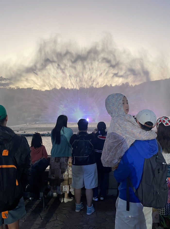 분수가 만들어내는 스크린에 쏘는 영상도 구경하고,
