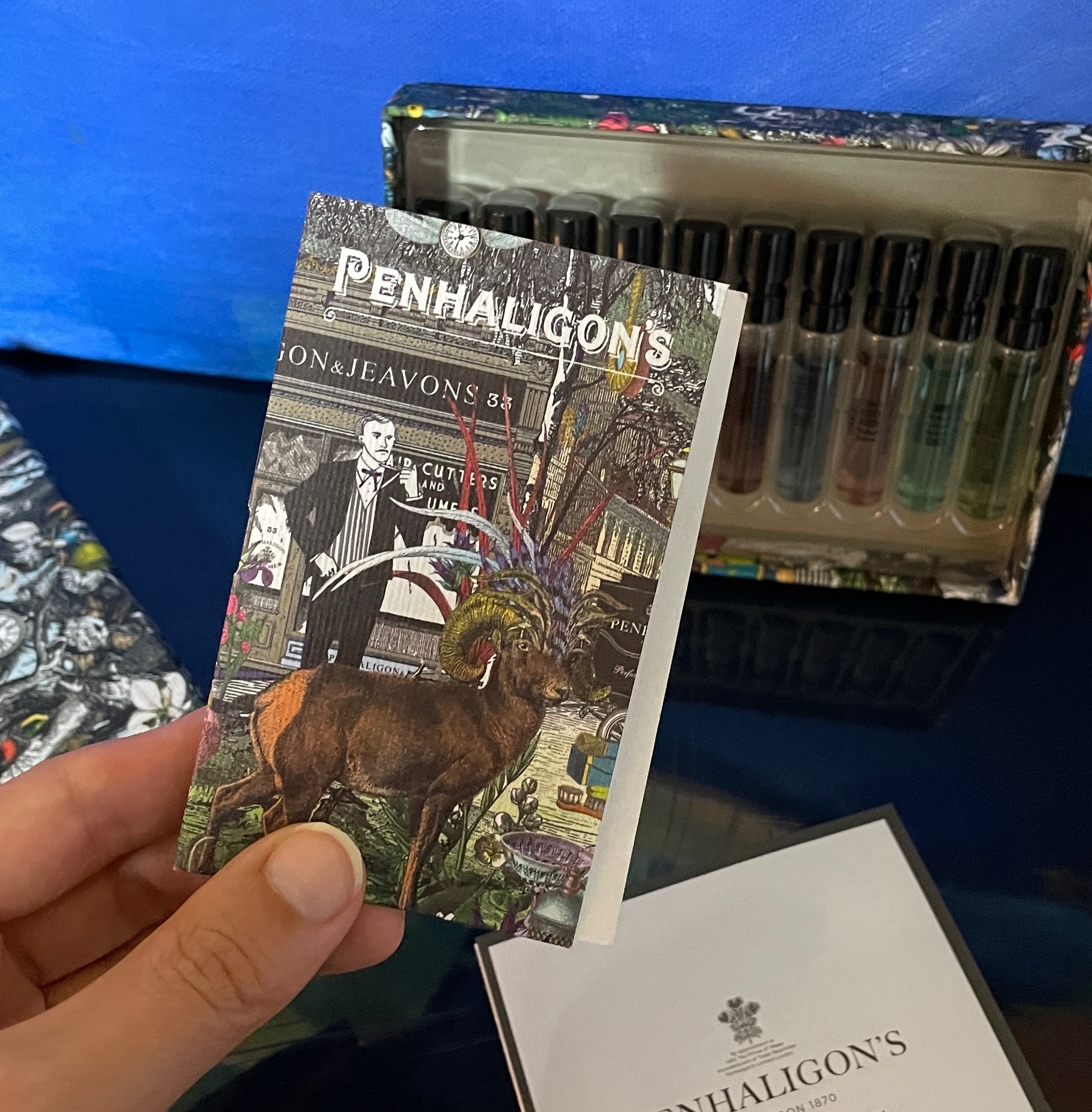 라이브러리는 10가지의 향을 시향해 볼 수 있는 샘플들의 모음인데, ‘라이브러리’라는 네이밍이 펜할리곤스 브랜드와 너무 잘 어울린다